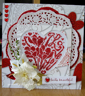 Итак, дошила сердечко со скрытым посланием любви "I love you", начатое в феврале задумывалось как бискорню, вышито на равномерке через 1 нитку, дошилось и оформилось в итоге в открытку, так как на данный момент скрап неотъемлемая часть моих рукоделок)