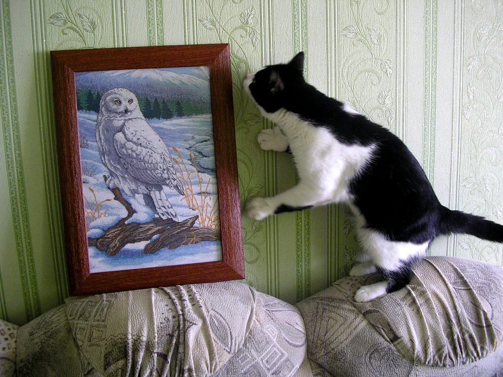 Еще начала Сову от Dimensions. Набор 1997 года я даже не стала искать, а сразу взяла настрой вышивать подбором. Закупила ниточки DMC и начала)