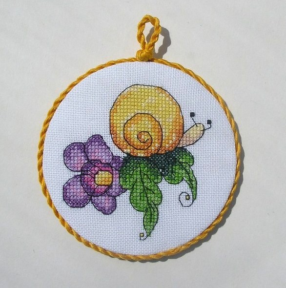 Для Юльчика вышилась улитка. Они с мужем знатные улиткоманы, потому с выбором сюжета для вышивания я определилась быстро) Эта улитка мега позитивная и солнечная)