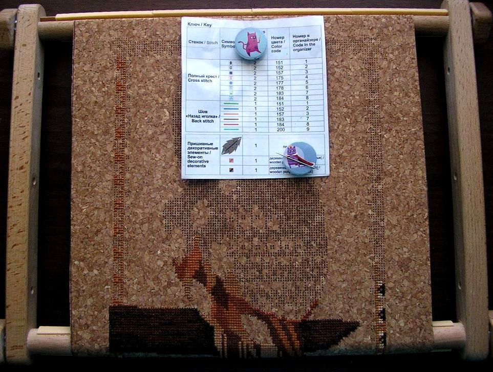 Фотографировала в разные дни, при этом один был солнечным, а другой пасмурным, потому фотографии получились по цветовой температуре отличные друг от друга. То, как это выглядит в реальности больше передает первое фото. А на втором зато плюс один собственноручно собранный магнит (на нем держится схема, не вошедшая в кадр), фишки из одной кошачьей серии были когда-то подарены Анной, вот и нашли своё применение.