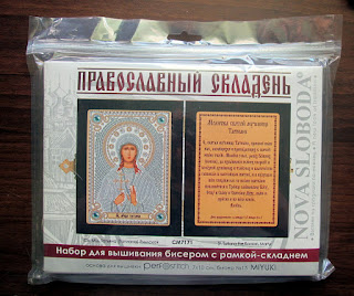 Наборы от "Новой Слободы" периодически привлекают мое внимание. Про набор с рамкой-складнем я думала давно, но по ряду причин так и не заказывала - то крестик предпочитаю бисеру, то тематика не моя, пока не решила вышить именную икону для мамули.