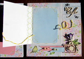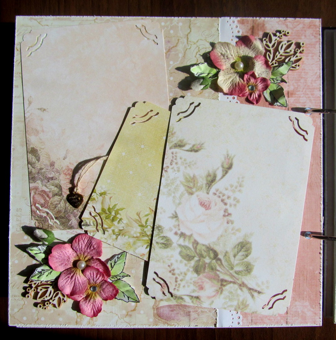 Альбом на пять разворотов, в основе заготовка на кольцах. Получилось весьма лаконично и нежно, на уровне простого обывателя, но я сама в целом осталась довольна, что бывает очень редко)