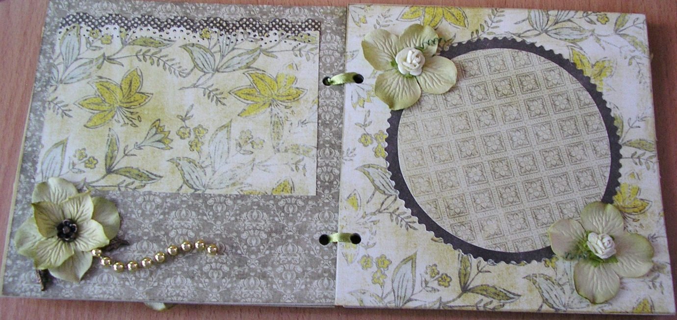 Наконец-то я решилась сделать альбомчик. Набор бумаги Queen Bee 15*15 см для фото 9*13. Делать альбом для меня было гораздо труднее чем открытки, особенно в плане экспозиции и украшалок...может потому что размер страничек маленький, а может если б делала его с фото сразу то и украшалки придумались бы....вобщем пока так скромненько на три разворота..первый блинчик=)..
