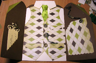 Не обошла и меня, наверное уже ставшая знаменитой, открытка мужская в форме пиджака. Я как получила задание сделать мужскую деньрожденскую открытку - сразу картинка в голове и сложилась. И вот итог
